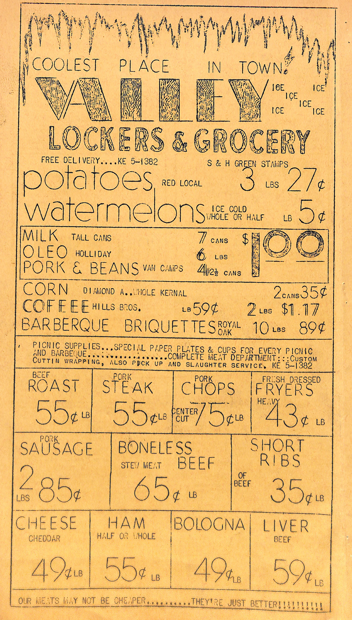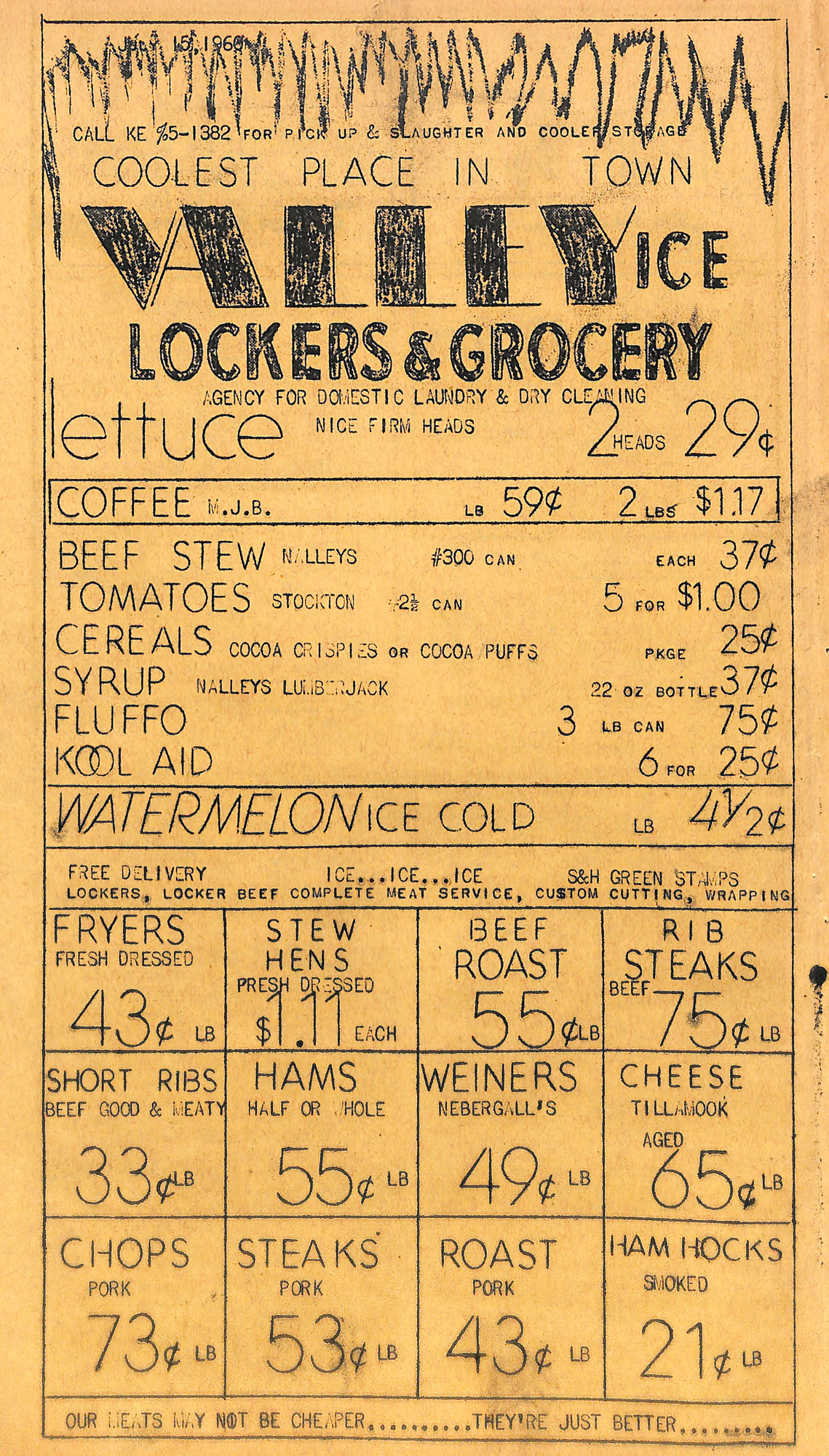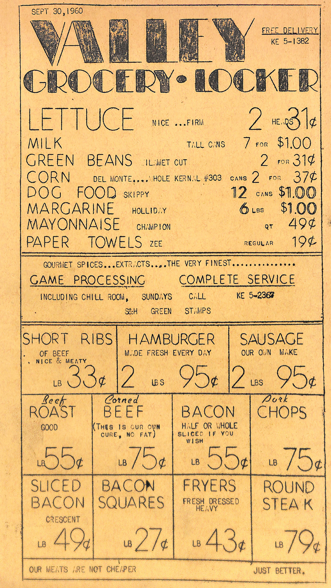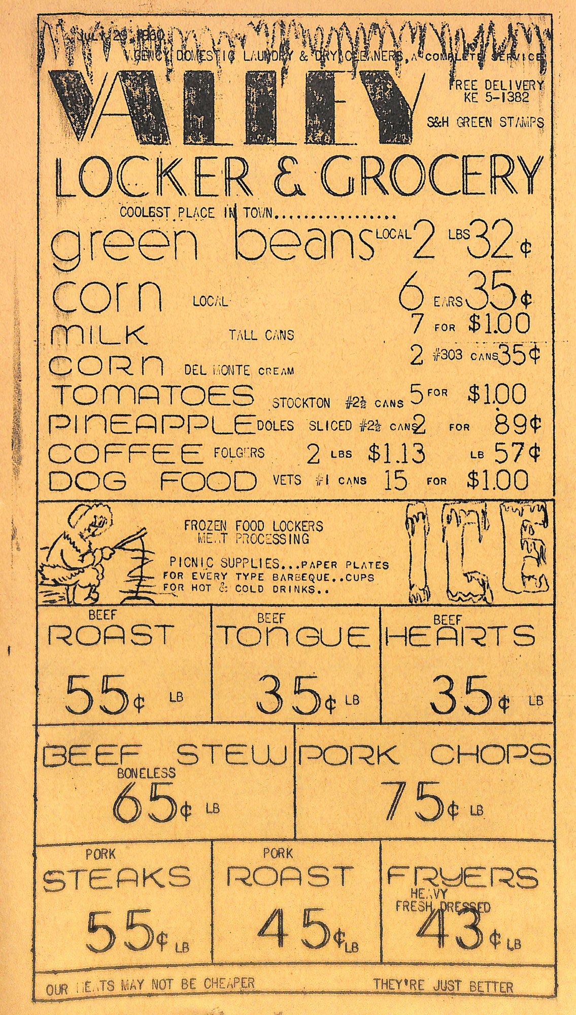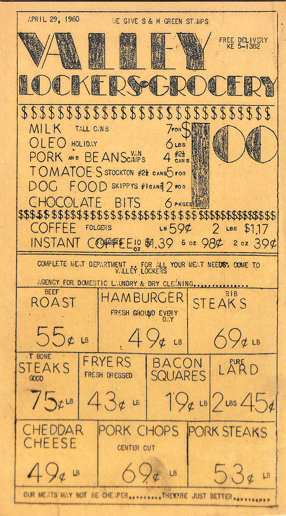 HERB'S WATCH REPAIR IVA TUGGLE'S DECORATED CAKES FOR SALE--3-bedroom modern house on 4 lots. Page 7, full-page ad for: VALLEY LOCKER & GROCERY Page 8, ads for: DRIVE-IN CLEANERS ARLIE'S TV REPAIR SERVICE FARMER'S INSURANCE--L.H. GALLATIN VOTE FOR ED McGINTY FOR COUNTY SURVEYOR UPTOWN BARBERSHOP AL GRABHER'S MOBILE FEED SERVICE VOTE NOV. 8 WANT ADS, cont. FOR SALE--Small boat, just right for duck hunting. Inquire LES' BARBERSHOP on the highway. FAMILY--with one child, 1 yr. old, non-drinker, no pets, would like to rent a 2-bedroom house on outskirts of Talent. Phone KE 5-2244. Mrs. Williams. FOR RENT--Modern 2-bedroom house, unfurnished, wired for electric stove. Inquire at 236 Gibson St. Page 9, ads for: ELECT ALAN B. HOLMES FOR DISTRICT ATTORNEY CHET RAPP FOR COUNTY TREASURER VOTE FOR HERBERT HUNTER--STATE CERTIFIED APPRAISER RETAIN HOWARD BELTON--Republican--AS YOUR STATE TREASURER ENLISTS IN WOMEN'S AIR FORCE