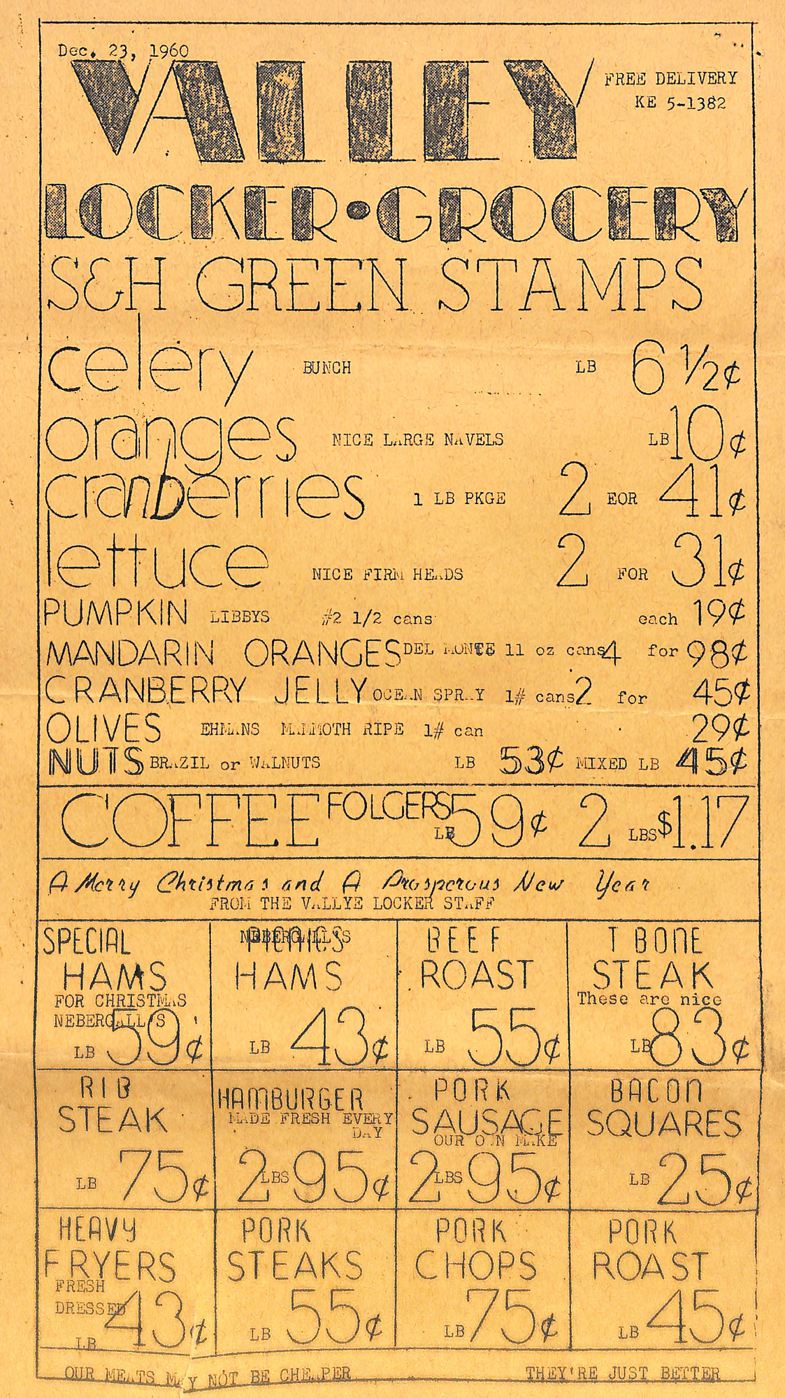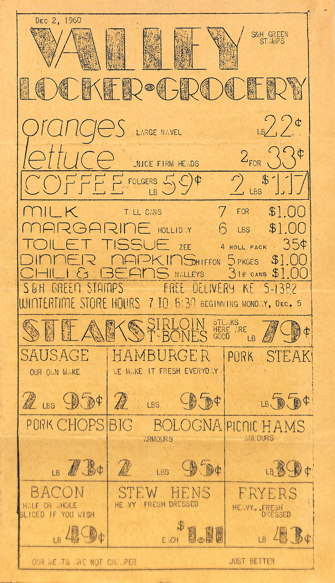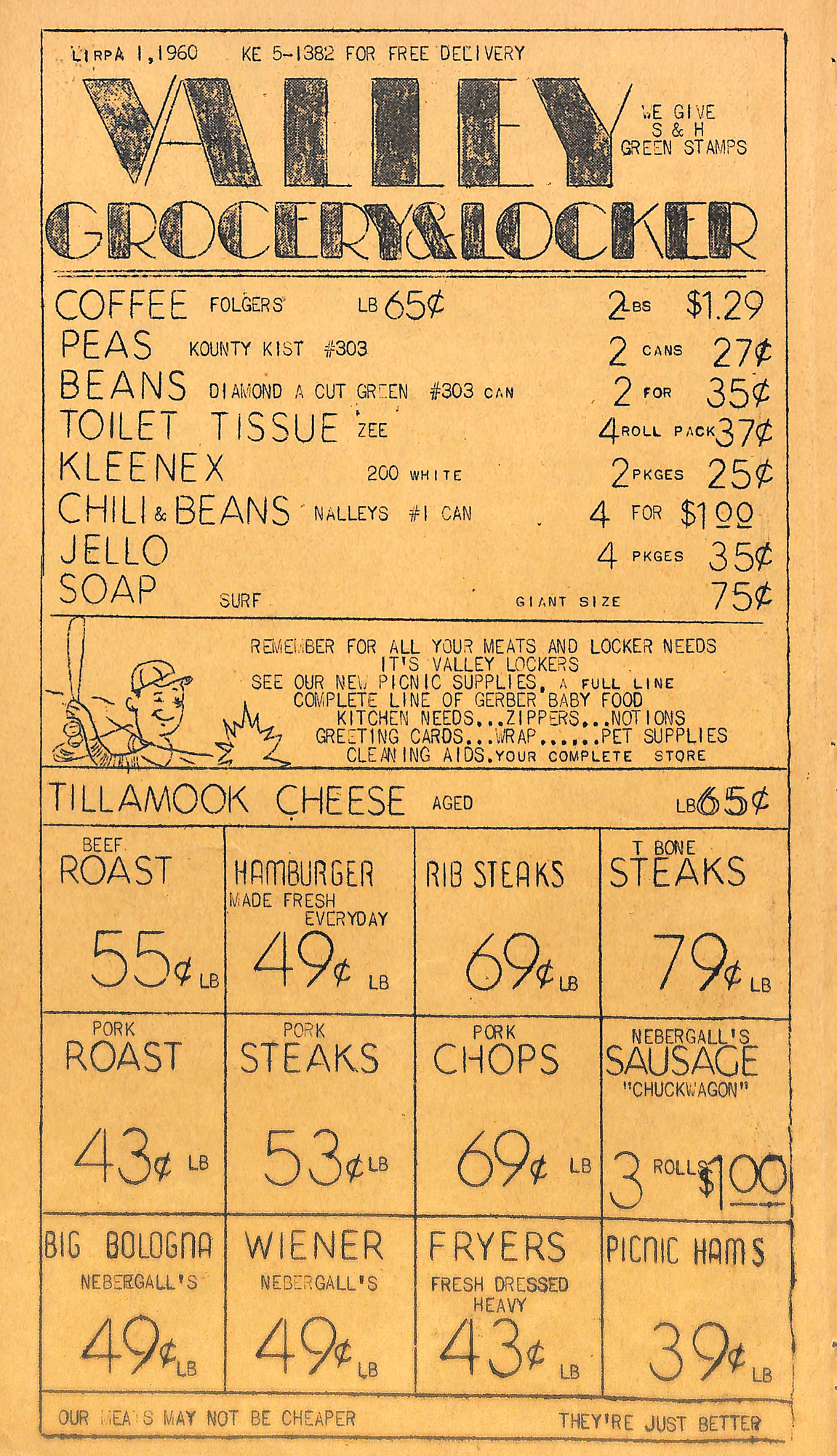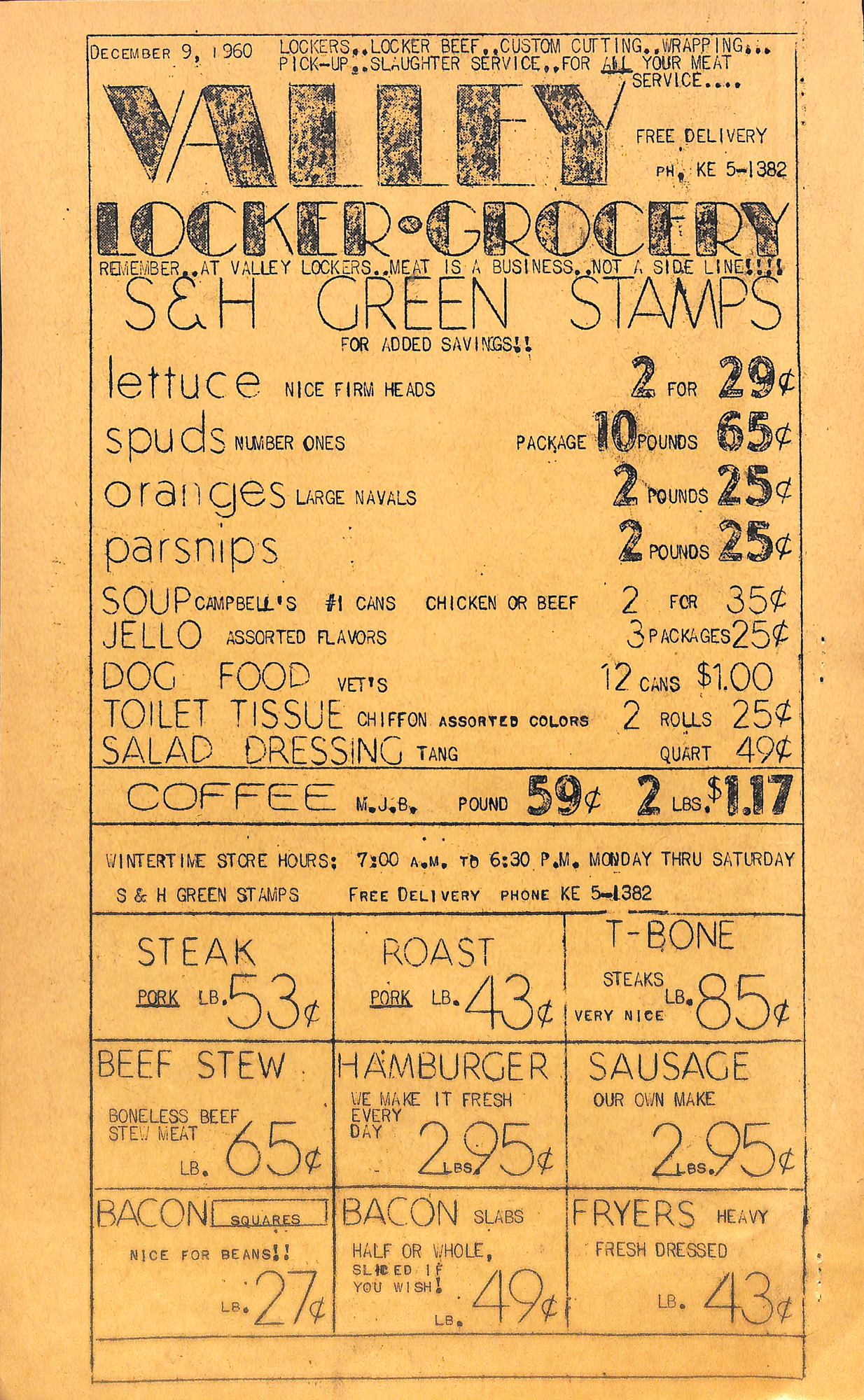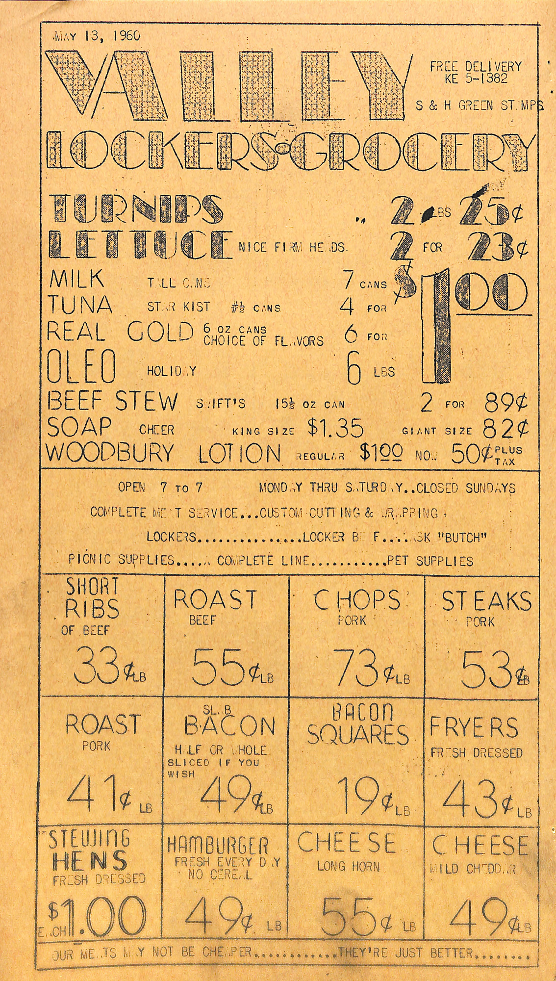 READ IT IN OUR YELLOW PAGES. EVERGREEN PRINTING SERVICE ASHLAND SANITARY SERVICE NEWS FLASHES PRINTING SERVICE STEIGER GARAGE WORK TALENT LUMBER YARD HERB'S WATCH REPAIR HARDWOOD FOR SALE STARK TREES AND SHRUBS FURNISHED APARTMENTS FOR RENT BEN'S OK NEW & 2ND HAND STORE--JANUARY SALE Page 4, full-page ad for: VALLEY LOCKER & GROCERY Page 5, ads for: DRIVE-IN CLEANERS ARLIE'S TV REPAIR SERVICE FARMER'S INSURANCE--L.H. GALLATIN UPTOWN BARBERSHOP AL GRABHER'S MOBILE FEED STORE PHOENIX INTERCITY MARKET FOR SALE--$15.00 Wards largest spring-mounted hobby horse. New $31.95. For sale $15.00 size 12 maternity wardrobe. KE 5-1015. After 5 p.m. LAST CHANCE--This is the last day for "The Tiny Gift Shop." For some real knock down prices, see Iva Tuggle at 104 S. First St. Open from 9 until 9 Friday, Dec. 16.--today, ONLY. This is my way of saying a very special "Thank You" for your patronage and for making our vacation possible. May the joy of Christmas be with you today and always.--Tiny Gift Shop BORN to Mr. and Mrs. William Reichstein, a girl named Heidi Lynn. She was born on Dec. 2, 1960 at the Ashland General Hospital. FOR SALE--80" bass accordion. Bargain for cash. Phone KE 5-2363. WOOD FOR SALE--KE 5-2231. Clarence Wienecke. Call after 5 pm. FOR SALE--6 young, white laying hens and rooster…$5.00; 1 large doe rabbit, $2.00; 1 automatic light control for 300 chicken house; 1 salmon pole and reel, hardly used, cost $45.00 for $10; 1 $30.00 International "WeedChopper," electric fence charger, good shape, $10.00. OLD HATCHERY. Phone KE 5-1215. USED LUMBER FOR SALE