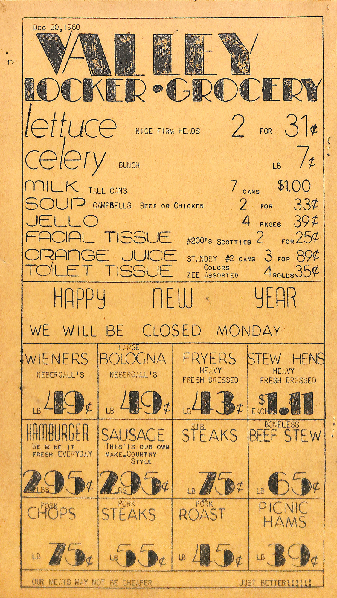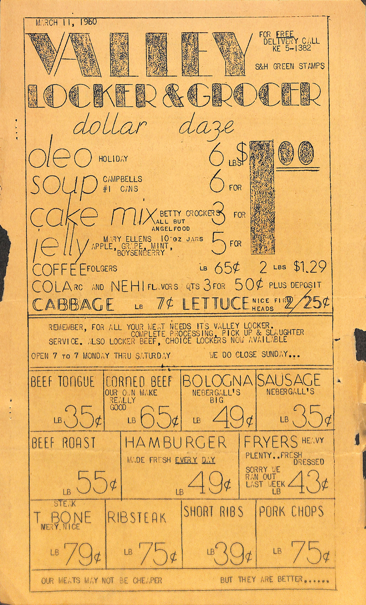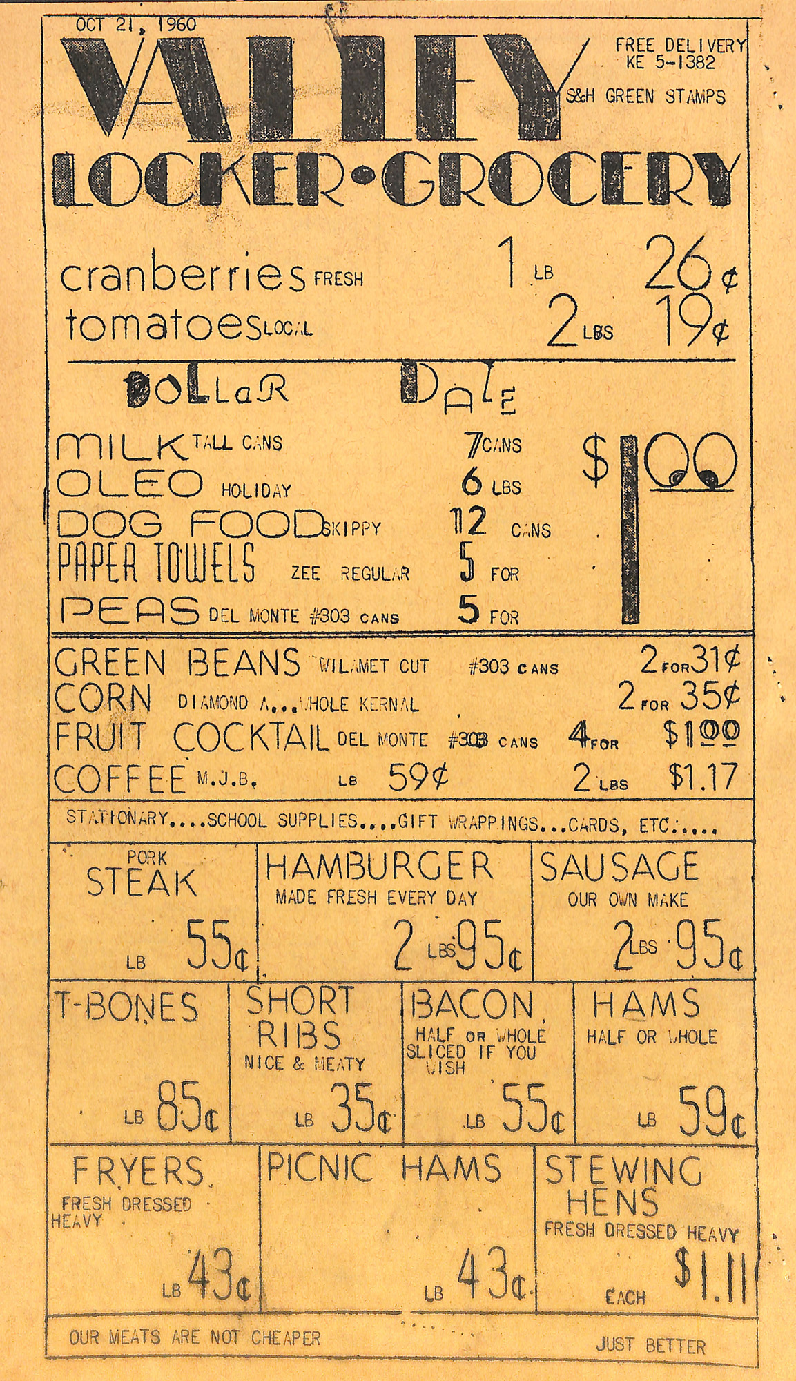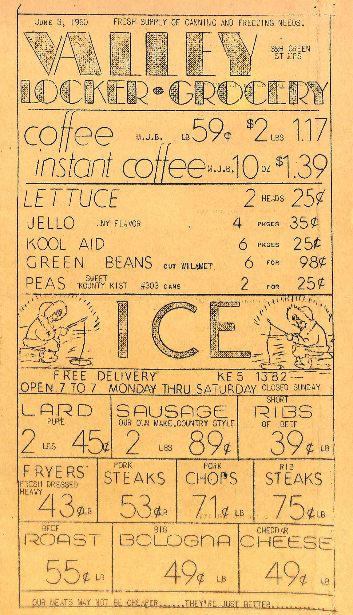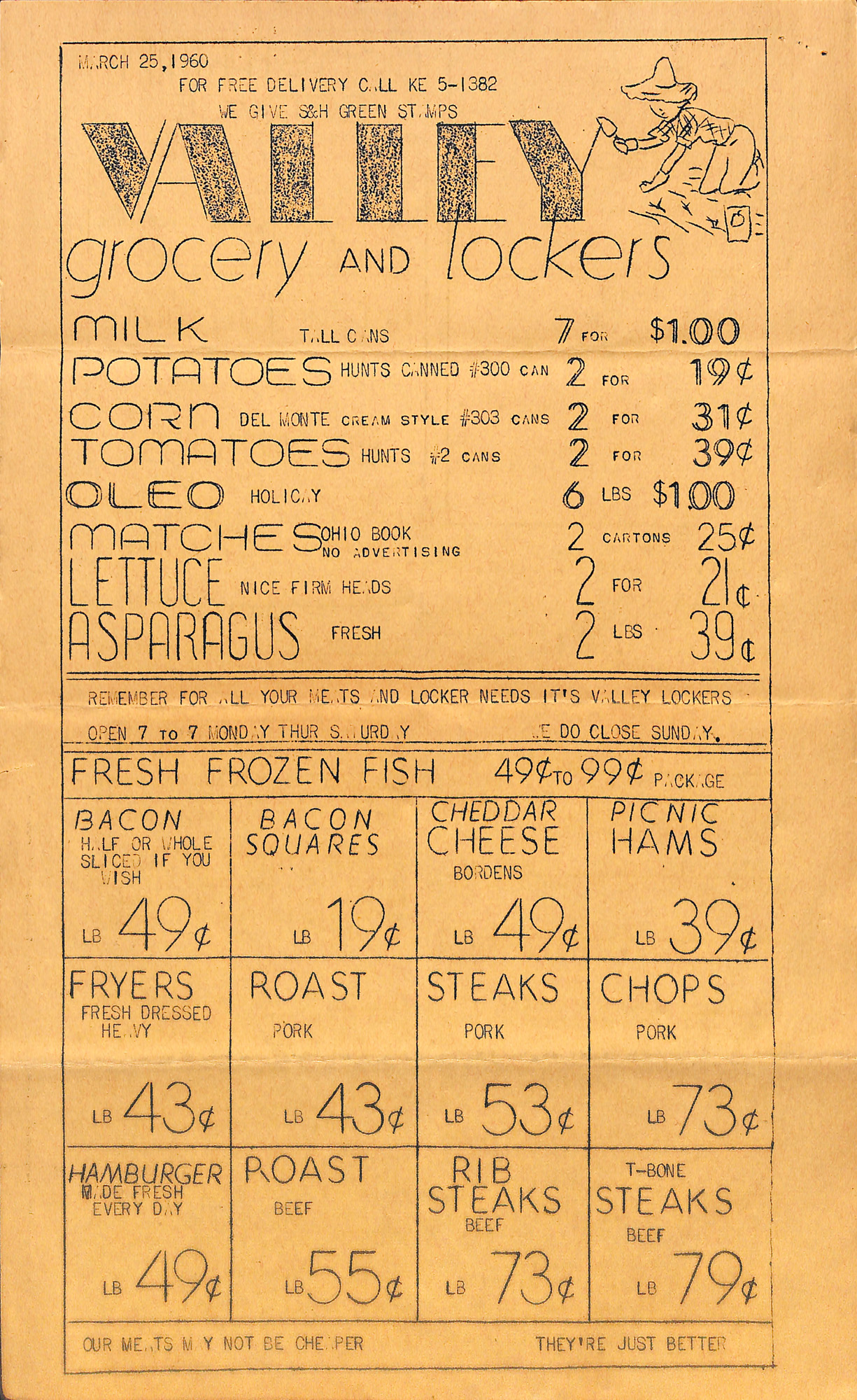 READ IT IN OUR YELLOW PAGES. EVERGREEN PRINTING SERVICE ASHLAND SANITARY SERVICE NEWS FLASHES PRINTING SERVICE STEIGER GARAGE WORK TALENT LUMBER YARD HERB'S WATCH REPAIR HARDWOOD FOR SALE STARK TREES AND SHRUBS FURNISHED APARTMENTS FOR RENT BEN'S OK NEW & 2ND HAND STORE--JANUARY SALE Page 4, full-page ad for: VALLEY LOCKER & GROCERY Page 5, ads for: DRIVE-IN CLEANERS ARLIE'S TV REPAIR SERVICE FARMER'S INSURANCE--L.H. GALLATIN UPTOWN BARBERSHOP AL GRABHER'S MOBILE FEED STORE PHOENIX INTERCITY MARKET FOR SALE--$15.00 Wards largest spring-mounted hobby horse. New $31.95. For sale $15.00 size 12 maternity wardrobe. KE 5-1015. After 5 p.m. LAST CHANCE--This is the last day for "The Tiny Gift Shop." For some real knock down prices, see Iva Tuggle at 104 S. First St. Open from 9 until 9 Friday, Dec. 16.--today, ONLY. This is my way of saying a very special "Thank You" for your patronage and for making our vacation possible. May the joy of Christmas be with you today and always.--Tiny Gift Shop BORN to Mr. and Mrs. William Reichstein, a girl named Heidi Lynn. She was born on Dec. 2, 1960 at the Ashland General Hospital. FOR SALE--80" bass accordion. Bargain for cash. Phone KE 5-2363. WOOD FOR SALE--KE 5-2231. Clarence Wienecke. Call after 5 pm. FOR SALE--6 young, white laying hens and rooster…$5.00; 1 large doe rabbit, $2.00; 1 automatic light control for 300 chicken house; 1 salmon pole and reel, hardly used, cost $45.00 for $10; 1 $30.00 International "WeedChopper," electric fence charger, good shape, $10.00. OLD HATCHERY. Phone KE 5-1215. USED LUMBER FOR SALE